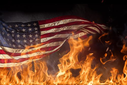In an exclusive report released by KTLA News, it was revealed that “the suspect sets the flags on fire with a lighter. He appears to be relaxed, keeping one hand in his pocket. He ensures the flag is fully ignited by flicking his lighter multiple times and touching the flames to the flag. He then calmly walks away from the burning debris.”